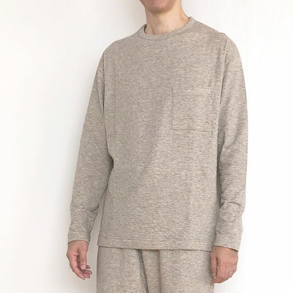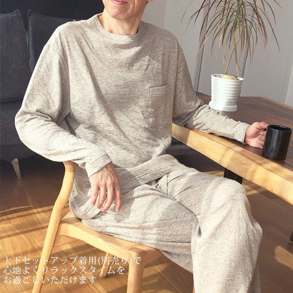 オーガニックコットン&ヤク メンズエアニットクルーネック長袖プルオーバー