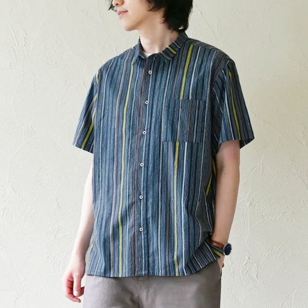 オーガニックコットン メンズチソウストライプシャツ(半袖)