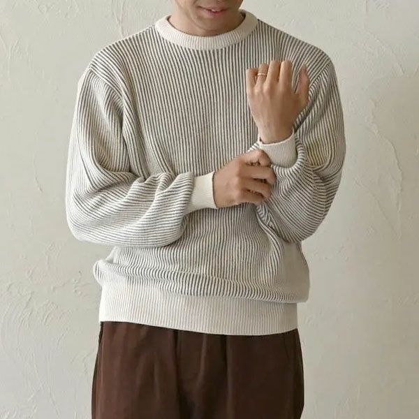 二色の糸を丁寧に片畦編みし、表情豊かな仕上がりに