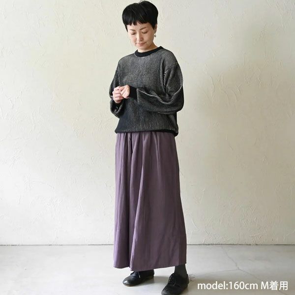 全体はゆったりとしたシルエットですが、袖口と裾にリブを入れることで引き締まった印象に。