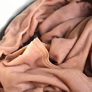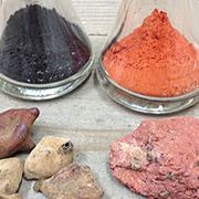 ベンガラは古代の土器や壁画にも使われた古くから親しまれている土から取れる成分(酸化鉄)です。酸化鉄の燃焼温度の差による色の変化を染料に応用した染色技法です。土から採取される成分なので、安全で自然に優しい染色方法として繊維製品への染色、オーガニック製品にも使用されるようになりました。紫外線に強いため耐光性にすぐれ、年数を経ても退色がほとんどないのも大きな特徴です。